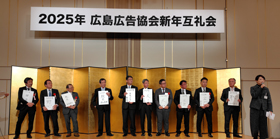 | 主な事業 | 例年6月に通常総会を開催。広島広告大学(夏季)、文化講演会(秋季)、広島広告企画制作賞(4月募集、6月表彰)、広島広告賞(6月表彰)、懇親ゴルフ会(秋季)、新年互礼会など実施。 | ||